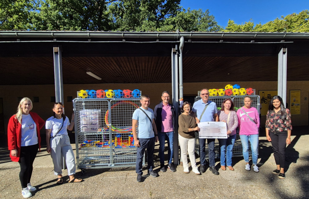 Der Förderverein FFE hat der Schule Pausenspielgeräte übergeben.