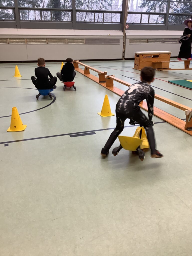 Es war wieder ein voller Erfolg! Alle waren wunderbar und phantasievoll am geschmückt. In den Klassen wurde kräftig gefeiert. Auch die Sekretärin, Frau Stierl, war natürlich dem Anlass entsprechend verkleidet. In der großen Turnhalle gab es viele sportliche Angebote. In der kleinen Turnhalle wurde in der Disco, die die Schulsozialarbeiterin, Frau Lara Martens, vorbereitet hatte, getanzt. Im Laufe des Vormittages gab es dort mehrere Polonaisen. Wer war vorne? Natürlich die Schulleiterin, Frau Böckermann, als Clown verkleidet. Was das wohl zu bedeuten hat?