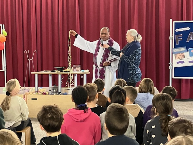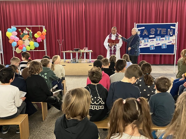 Die 3. und 4. Klassen haben mit Pfarrer Makinesi am 18.02.2026 einen Wortgottesdienst gefeiert. Begleitet wurde der Pfarrer von Regina. Musikalische Begleitung war Alina Ruda. Die Klasse 3c hat mit ihrer Klassenlehrerin, Frau Gatzmenga, die Feier vorbereitet und die Bedeutung des Aschermittwochs erklärt.